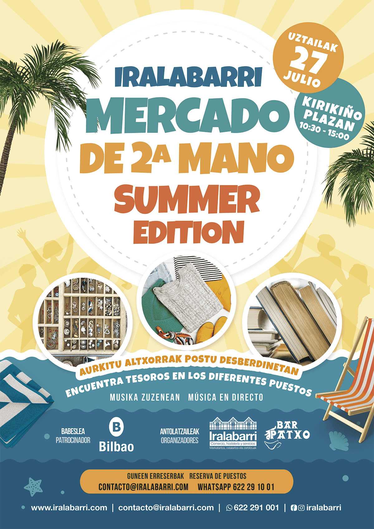 Dena prest dago auzoko Bigarren Eskuko Azokaren edizio berri baterako. Uztailaren 27an, larunbata, 10:30etik 15:00etara izango da, Kirikiño plazan, Errege Katolikoen Etorbidearen ondoan, eta Musikarekin girotua egongo da.