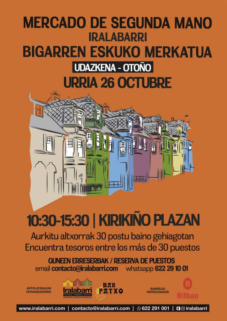 Datorren larunbatean, urriaren 26an, bigarren eskuko azoka txikia itzuliko da, Bilboko azokarik ederrena. 10:30etik 15:30era, 30 postu baino gehiago Kirikiño plaza beteko dute, Errege Katolikoen oinezkoen ondoan. Bizilagunek erosi eta saldu ahal izan dezaten beraiek behar ez dutena, baina oso erabilgarria izan daitekena beste batzuentzat.
